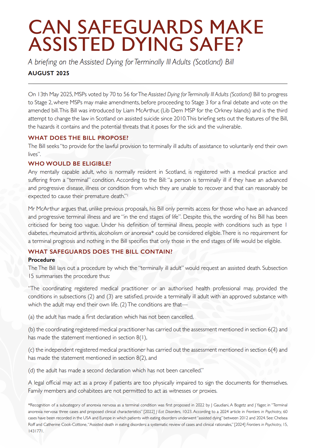 In September 2022, Liam McArthur MSP lodged his Assisted Dying (Scotland) Bill. This series of briefings examine the problems with assisted suicide.